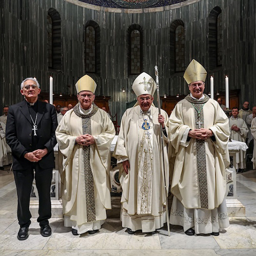 2. Carissimi fratelli e sorelle, chiediamoci: perché Dio ha voluto assumere la nostra umile condizione e la nostra natura umana? A rispondere è ancora l’evangelista Giovanni con queste parole: “A quanti però lo hanno accolto ha dato potere di diventare figli di Dio: a quelli che credono nel suo nome, i quali … da Dio sono stati generati” (1,12). L’incarnazione del Verbo realizza un progetto pensato fin dal principio nella mente di Dio: introdurre ciascuno di noi nella stessa vita divina; rendere ciascuno di noi partecipe della condizione divina che è propria del Figlio unigenito, che è nel seno del Padre. La felicità quindi consiste nel partecipare alla stessa vita divina. Siamo stati pensati fin dall’eternità come figli adottivi del Padre, partecipi della filiazione del Verbo. È questa la verità della nostra persona, la ragione per cui esistiamo. Il Verbo si fece carne perché noi potessimo, attraverso di Lui e in Lui, realizzarci secondo la verità del nostro essere. È questo il grande dono del Natale: ognuno di noi è posto nella stessa condizione divina del Verbo a causa del fatto che il Verbo si è posto per sempre nella nostra condizione umana. Siamo stati elevati a dignità divina: oggi “la pasta della nostra natura è interamente santificata da Cristo, primizia della creazione” (S. Giovanni Nisseno).