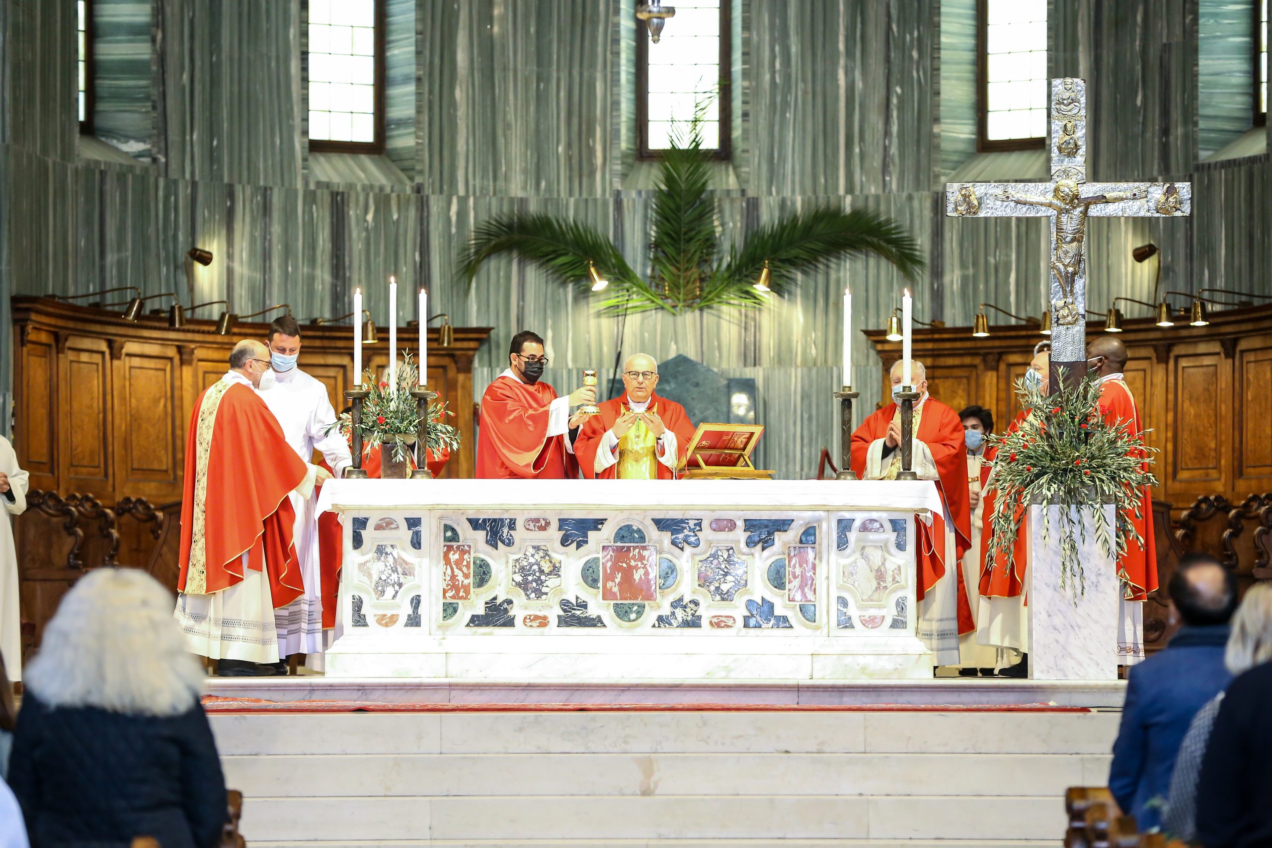 1. Dopo il tempo quaresimale, con la Domenica delle Palme la Chiesa ci immette nella Settimana Santa, cioè nella solenne celebrazione del cuore del mistero di Cristo. Nella ammonizione introduttiva alla processione, infatti, ci è stato spiegato che “Questa assemblea liturgica è preludio alla Pasqua del Signore… Gesù entra in Gerusalemme per dare compimento al mistero della sua morte e risurrezione… Chiediamo la grazia di seguirlo fino alla croce per essere partecipi della sua risurrezione”. Ad aiutarci nella richiesta di questa grazia speciale è stata la lettura dei capitoli 14 e 15 del Vangelo di Marco riguardanti la passione del Signore. Tutto il Vangelo di Marco ruota attorno alla seguente domanda: chi è questo Gesù che “parla come nessun uomo ha parlato” (Gv 7,46) e compie gesti miracolosi che sorprendono e sconvolgono? La risposta giunge al momento della morte di Gesù sulla croce e a darla è un centurione – un pagano, un soldato – che gli stava di fronte il quale, dopo che lo vide spirare, affermò: “Veramente quest’uomo era Figlio di Dio!” (15,39). Abbiamo qui una mirabile professione di fede, capace di cogliere fino in fondo il valore del paradosso cristiano: leggere l’onnipotenza di Dio nell’impotenza della croce.