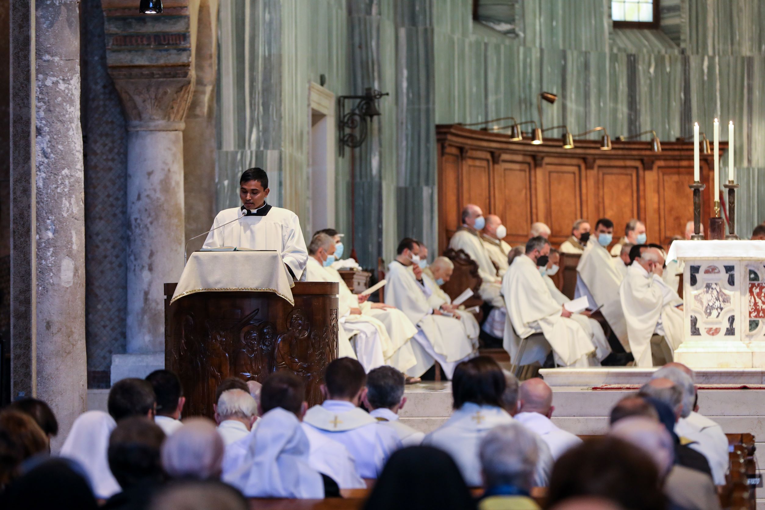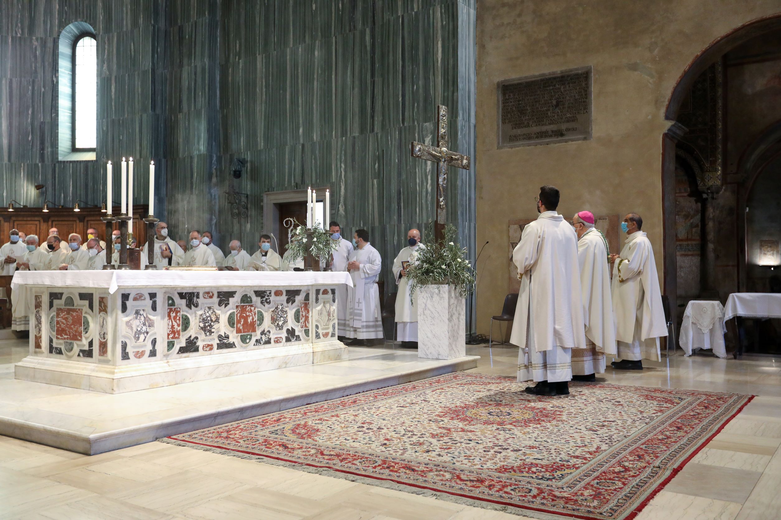 1. La solenne Liturgia che stiamo celebrando ci richiama il dies natalis del nostro sacerdozio, che vogliamo ricordare con lo sguardo implorante al Signore che ci offre la grazia di partecipare alla Santa Messa crismale. In questa circostanza affidiamo al Padre celeste i confratelli che ci hanno lasciato, dopo aver servito Gesù e la Chiesa: don Fabio Ritossa, don Giuseppe Colombo, don Ivan Miklavc della comunità salesiana slovena e padre Galdino Fornasiero dei Cappuccini, Cappellano della Stazione ferroviaria. Ricordiamo con affetto fraterno i nostri confratelli ammalati i quali, con le loro sofferenze vissute in unione al Crocifisso, continuano misteriosamente a rendere fecondo il loro ministero e quelli che stanno esercitando il loro ministero in altri contesti ecclesiali e continentali. Ci uniamo poi alla gioia dei confratelli che ricordano quest’anno la ricorrenza della loro ordinazione presbiterale: a loro verrà riservata un'attenzione particolare in occasione della celebrazione della Giornata Mondiale delle Vocazioni. Ringraziamo poi il Signore per aver donato alla nostra Chiesa tre sacerdoti: don Luis Miguel Miranda, don Daniele Scaramuzza e don Emanuele Trojano, che hanno iniziato il loro ministero presbiterale nelle parrocchie della Diocesi. A questi aggiungo i sei diaconi transeunti che, tra poco, saranno ordinati sacerdoti: don Simone Bigi, don Nicola Bissaldi, don Davide Lucchesi, don Gabriele Pagnossin, don Marek Adamski, don Giovanni Dolermo: li accompagniamo con la preghiera, pronti ad accogliere questi fratelli nel nostro presbiterio. Con gli stessi sentimenti ricordiamo anche i tre diaconi permanenti: Marco Eugenio Brusutti, Emmanuele Natoli e Pierino Valent Simonetti. Infine, un grazie e una preghiera speciali per i carissimi diaconi che con noi sacerdoti condividono gioie e fatiche pastorali. Tra loro è venuto a mancare Giorgio Tamplenizza, esemplare e amato da tutti: lo affidiamo all’abbraccio del Padre celeste.