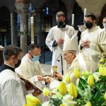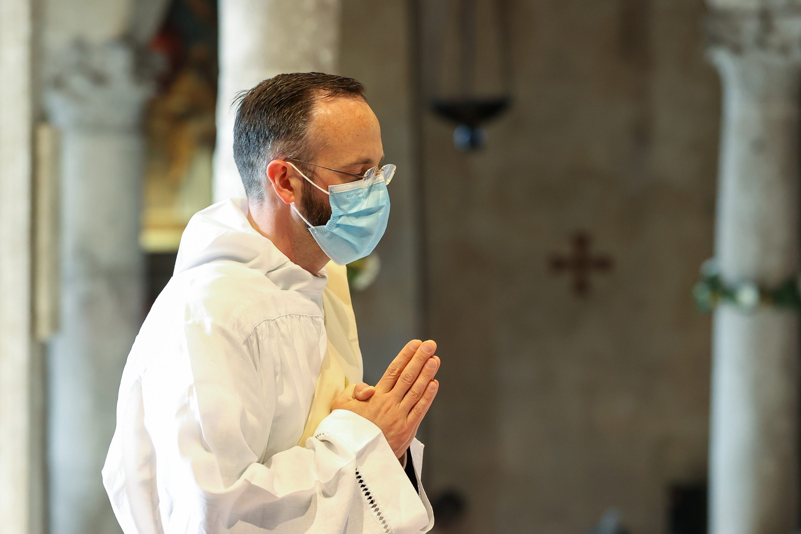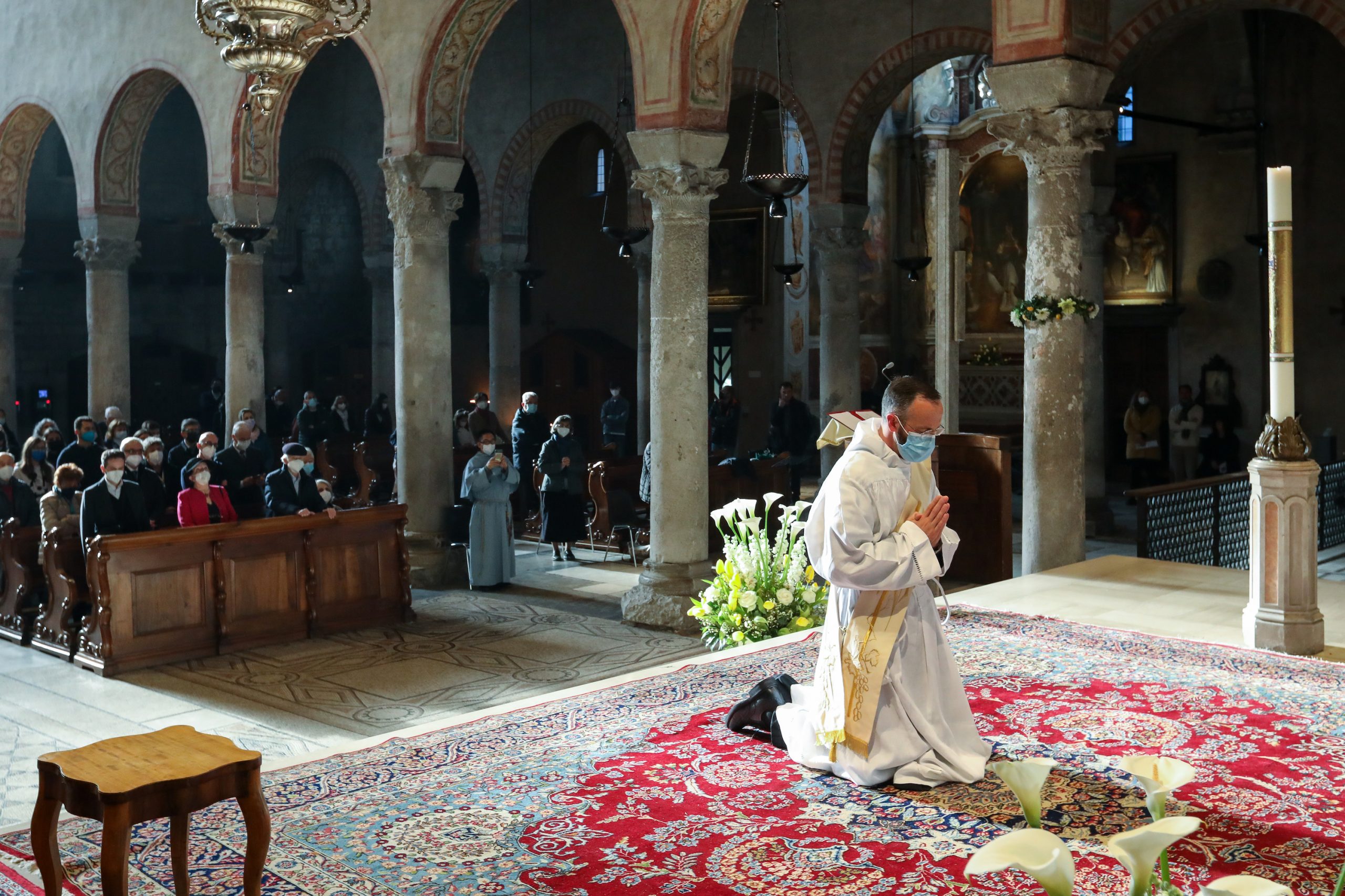 1. La nostra Chiesa è in festa per l'ordinazione presbiterale di don Simone Bigi che, arrivato da Monza, qui a Trieste ha scoperto la sua vocazione, continuando poi il suo discernimento e la sua preparazione a Roma. Con l'ordinazione sacerdotale viene inserito stabilmente e definitivamente nel presbiterio tergestino. Alla gioia del tempo pasquale si somma quella di questa ordinazione, che diventa motivo per esprimere la nostra viva riconoscenza al Signore Gesù che continua ad arricchire la nostra Diocesi di nuovi presbiteri. Riconoscenza che va anche ai suoi familiari, in particolare a sua mamma, che hanno seguito e sostenuto don Simone nella scelta di abbandonare tutto per dedicarsi a Gesù e alla sua Chiesa. Un grazie doveroso lo devo anche ai sacerdoti e formatori che, qui in Diocesi e a Roma, lo hanno guidato nel suo cammino di discernimento e di maturazione. In questa occasione, tanto significativa e importante per don Simone, sono a invitavi a sostenerlo con la preghiera, in spirito di fervida lode al Padre che lo ha chiamato, al Figlio che lo ha attirato a sé, allo Spirito che lo ha formato. Davanti a questa assemblea radunata da Cristo stesso, don Simone ha appena pronunciato il suo Adsum – eccomi, sono pronto! In definitiva si è messo a disposizione di Colui che "è morto per tutti, perché quelli che vivono non vivano più per se stessi, ma per colui che è morto e risorto per loro" (2Cor 5,15).