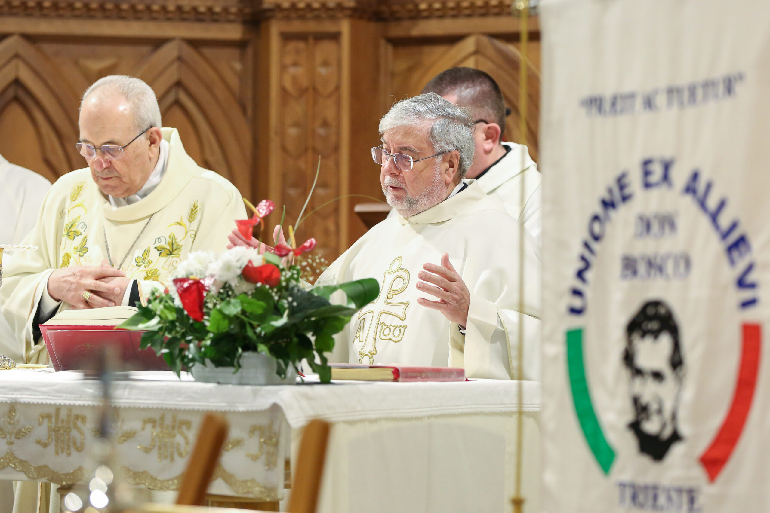 2.         Carissimi fratelli e sorelle, chiediamoci: cosa dice alla nostra Chiesa di Trieste san Giovanni Bosco? Da lui arriva l’invito ad aprire le porte ai giovani. Essi hanno bisogno della Chiesa e questa ha bisogno di loro. L’indifferenza reciproca non giova a nessuno e lascia nel cuore dei giovani dei vuoti enormi, che nessun’altra realtà umana, sociale o religiosa può colmare. Ma lascia anche, nel cuore della Chiesa, un ampio posto vuoto, che impedisce di rinnovarsi e di puntare al futuro con coraggio e speranza. Più che mai oggi i giovani sono chiamati ad essere responsabili di una Chiesa, che intende essere casa e scuola di comunione per tutti, dove si impara a pregare insieme, ad accostare la Bibbia, a celebrare l’Eucaristia, a servire con amore e solidarietà i piccoli, i poveri e sofferenti, a fare esperienza di incontro con Gesù. Cari giovani, risuoni nel vostro animo l’invito del Signore: Seguimi!. Abbiate il coraggio di dare una risposta generosa, staccandovi dalle molte cose che impediscono di rischiare sulla sua Parola, anche quando appare troppo alta e impegnativa, come è la vocazione al sacerdozio o alla vita consacrata o al matrimonio. Don Bosco vi aiuti a credere in voi stessi e a puntare in alto nella vostra vita, verso i traguardi inesplorati delle vette della fede e dell’amore.