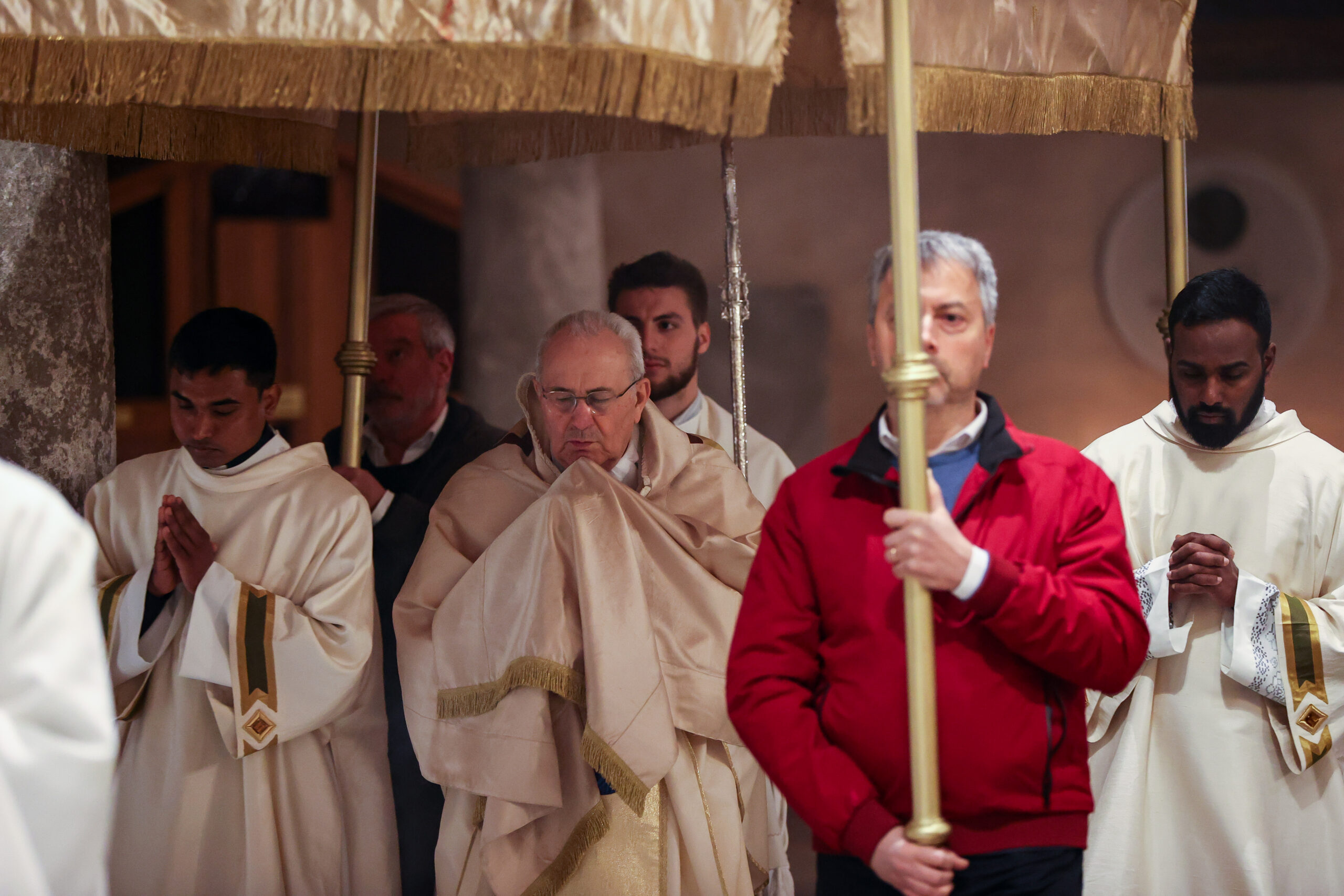 1. In questa celebrazione denominata in Coena Domini, mentre prendono avvio i tre giorni più santi dell’anno liturgico, facciamo memoria dell'istituzione del sacramento dell'Eucaristia. Esso è il dono mediante il quale Cristo continua a camminare con noi come luce, come forza, come nutrimento, come sostegno nei giorni della nostra vita. Il Concilio Vaticano II affermò che l’Eucaristia è “il culmine a cui tende l’azione della Chiesa e, nello stesso tempo, la fonte da cui promana tutta la sua forza” (Sacrosanctum Concilium, 10); è “la sorgente e il culmine di tutta la vita cristiana” (Lumen Gentium, 11). L’Eucaristia, infatti, è il centro e il cuore della vita della Chiesa e di ognuno di noi. Con l’Eucaristia nessuno è più solo nella vita, perché sa che nel tabernacolo, collocato nella penombra e nel silenzio di tutte le chiese, è presente Gesù che conosce il tuo nome e la tua storia, che ti ama, che ti aspetta e ti ascolta. E davanti al tabernacolo ognuno di noi può confidare quanto ha nel cuore e ricevere conforto, forza e pace. Inoltre, l’Eucaristia è sacramento dell’unità. Noi tutti, infatti, mangiamo lo stesso pane e riceviamo lo stesso corpo del Signore: Egli ci rende tutti una cosa sola. L’Eucaristia è il mistero dell’intima comunione di ognuno di noi col Signore, ed è, al tempo stesso, l’unione visibile tra tutti noi.