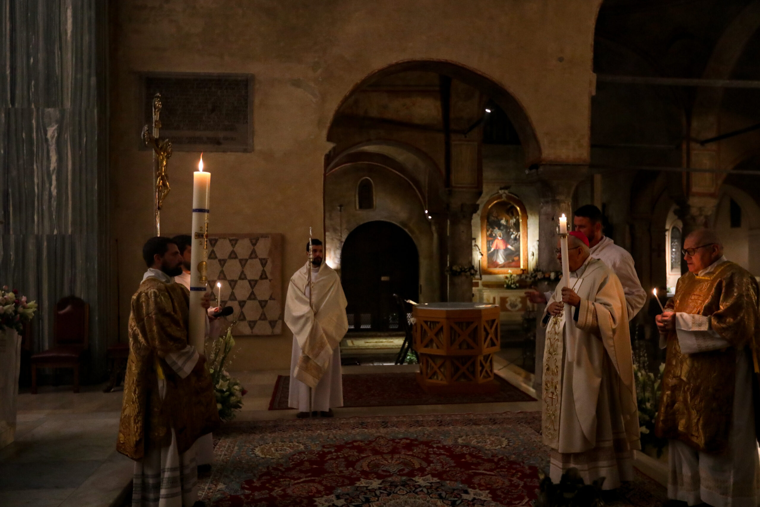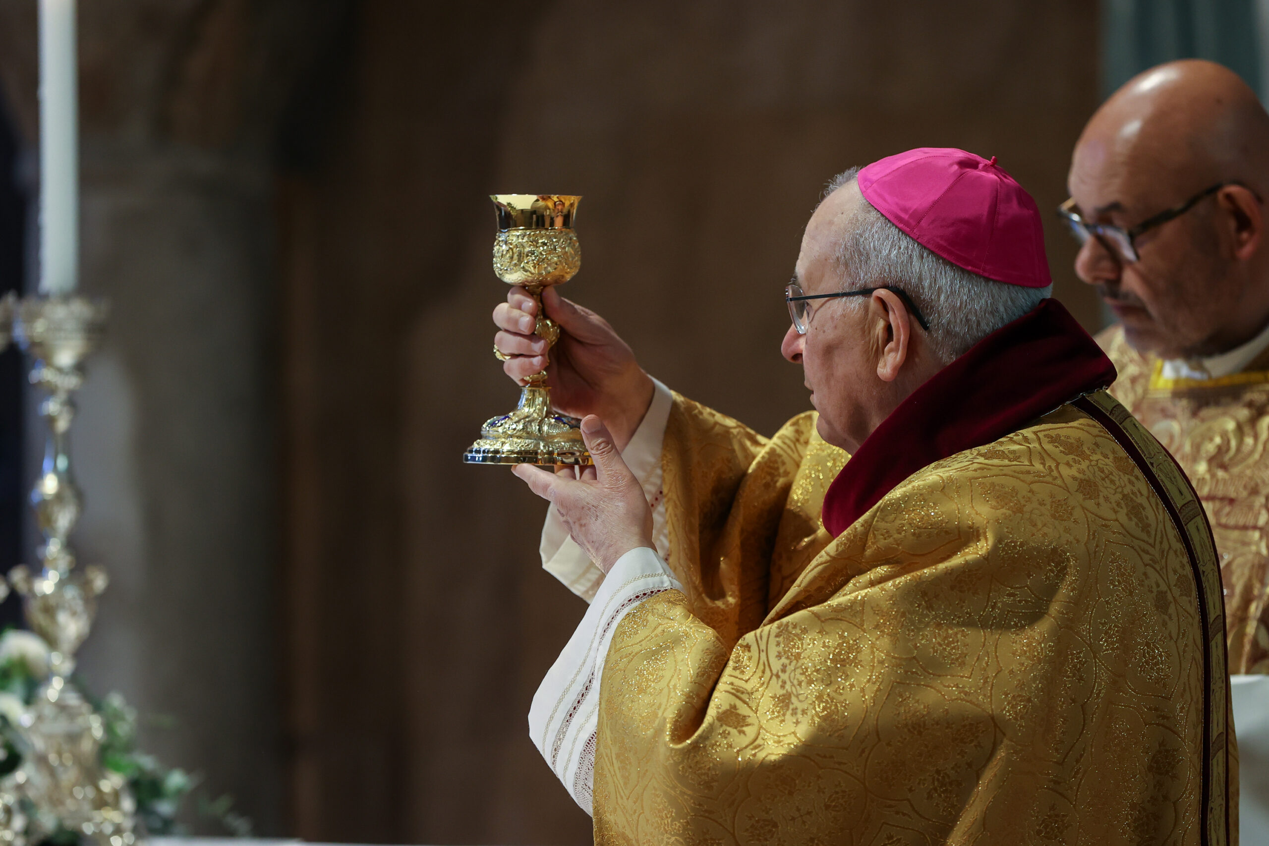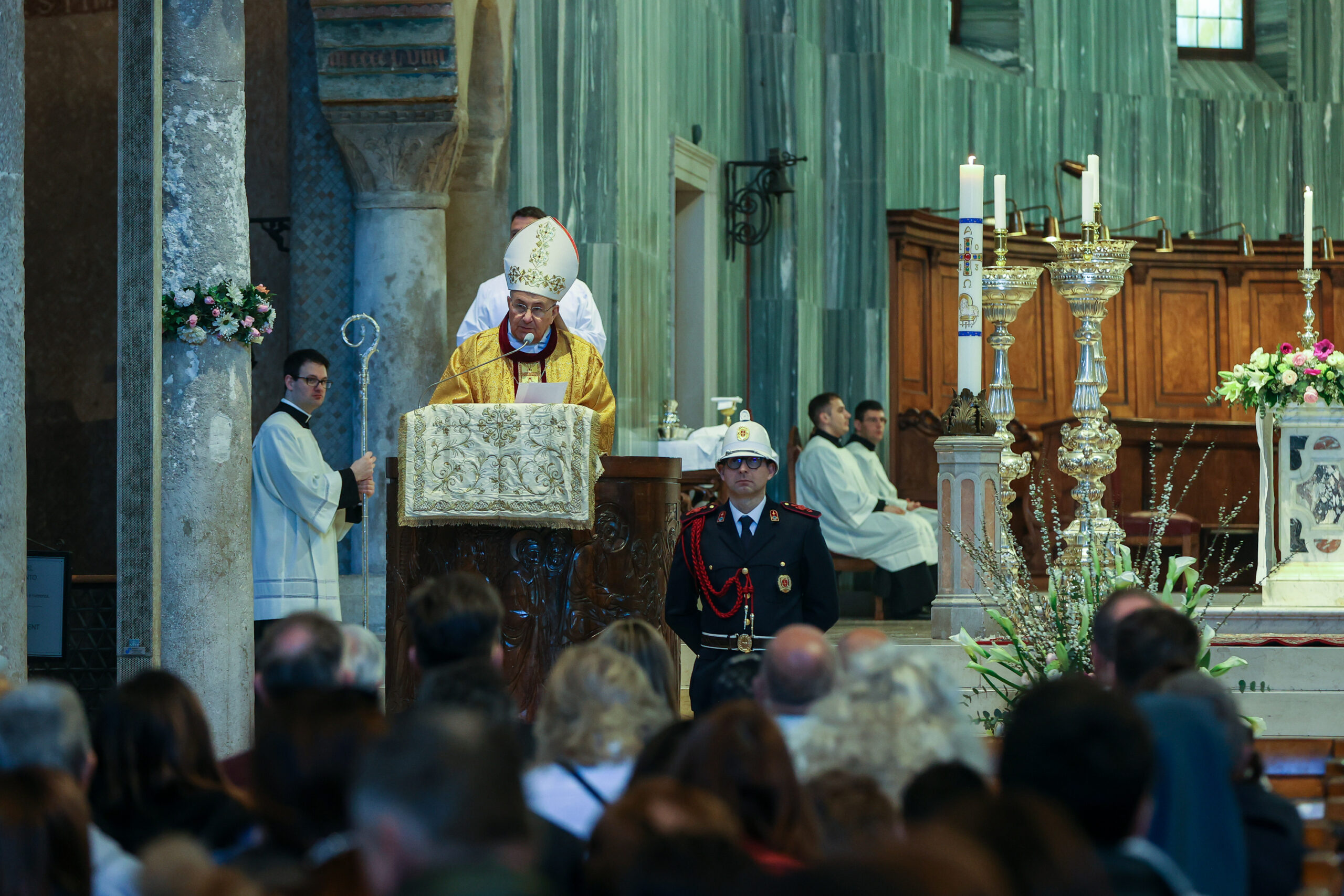 1. Il brano del Vangelo che è stato appena proclamato ci ha trasmesso questa singolare narrazione dell’evangelista Giovanni: “giunse intanto anche Simon Pietro che lo seguiva ed entrò nel sepolcro e vide le bende per terra, e il sudario, che gli era stato posto sul capo, non per terra con le bende, ma piegato in un luogo a parte”. Al cuore di questo racconto c’è un sepolcro. Chiediamoci: perché a Pasqua un sepolcro diventa il punto in cui si concentra la nostra attenzione? Non certo per convincerci che il sepolcro sia la casa definitiva di ogni persona umana: questo lo sappiamo tutti e da sempre. La risposta è altra: quel sepolcro, infatti, rivela che il nostro destino ultimo è mutato. In che modo? In questo: il cadavere che era stato posto in quel sepolcro, il cadavere di Gesù distrutto e devastato dalla crocifissione, non c’è più. Lo stesso Simon Pietro, che aveva fatto un’accurata ispezione del sepolcro, fornirà la vera ragione per cui lo aveva trovato vuoto. “Essi lo uccisero appendendolo a una croce, ma Dio lo ha risuscitato al terzo giorno e volle che apparisse … a noi, che abbiamo mangiato e bevuto con Lui dopo la sua risurrezione dai morti”. Il cadavere non è più nel sepolcro, perché Gesù morto crocefisso è stato risuscitato: su di Lui la corruzione della morte non l’ha avuta vinta in quanto Dio lo ha liberato e gli ha donato la vita incorruttibile. Noi oggi, con la Pasqua di risurrezione di Gesù, celebriamo il fatto che costituisce l’unica e vera svolta nella storia dell’umanità e di ciascuno di noi: incapaci di sperare oltre la morte, rassegnati ad essere destinati ad un nulla eterno, oggi ci viene è detto che, in Cristo, la nostra vita non è per la morte, ma per la vita piena ed eterna.