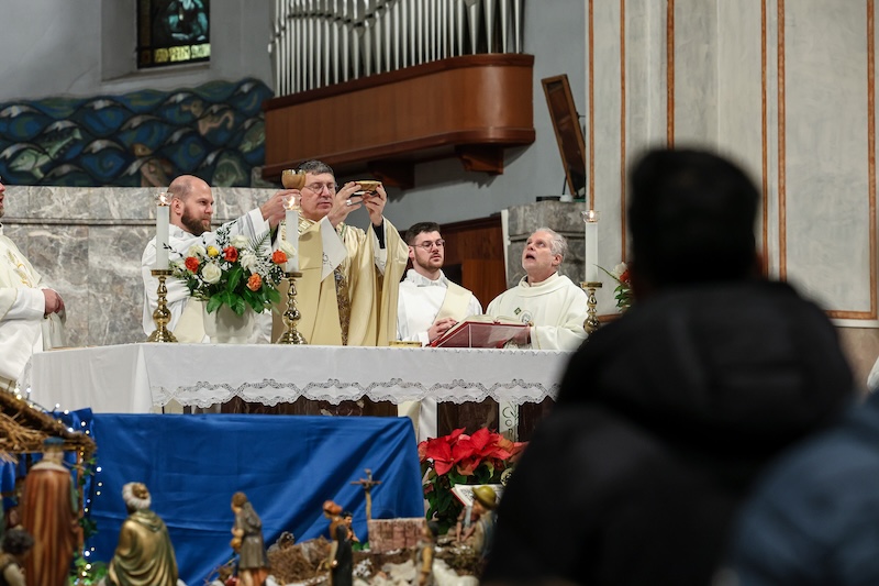 E poi subito qui, davanti a Lui, prostrati ed entusiasti come i Magi, magari affaticati per il lungo viaggio… (che per molti è stato anche di sofferenze) chiediamogli di essere anche noi una stella lucente che sa sorreggere e illuminare il cammino delle persone che Dio ci ha affidato.