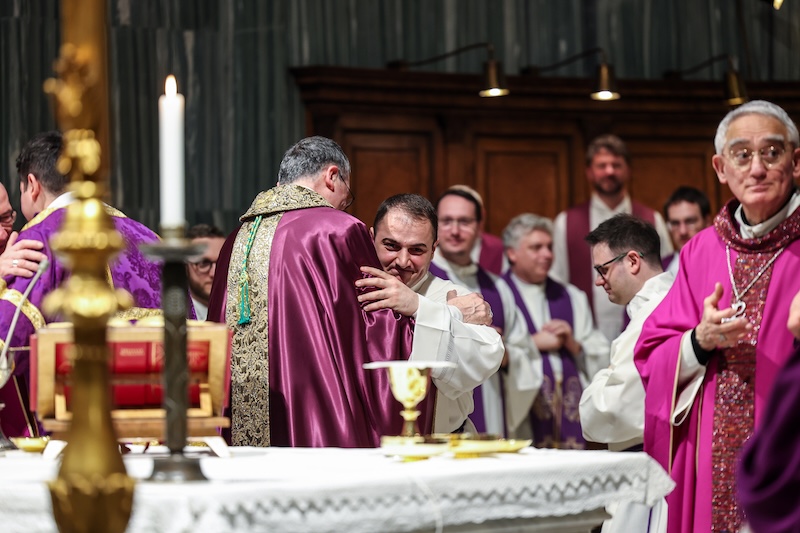 E anche Lì, in quelle strade e in quelle piazze abitate da fratelli che soffrono e sono in attesa… alimentati dall’Eucarestia a cui vi consacrate, cari Giulio, Marijo, Matteo e Paul sarete chiamati a rimanere nell’ascolto di Lui, anche delle pagine più complesse del Vangelo, alimentati da quel pane del cammino che da forza e vigore sovrumani. Divini. Perché siete incorporati in Cristo, fatti suo Popolo. Suoi ministri coraggiosi e fedeli.