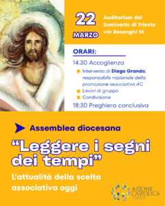 Domenica 22 febbraio 2026, dalle ore 14.30, presso l’Auditorium del Seminario vescovile, si terrà l’Assemblea diocesana dell’Azione Cattolica, che quest’anno rifletterà sul tema “Leggere i segni dei tempi. L’attualità della scelta associativa oggi”.