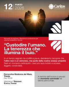 Giovedì 12 marzo 2026, alle ore 18.30, nella chiesa parrocchiale della Madonna del Mare, il Vescovo mons Enrico Trevisi interviene al momento di preghiera, riflessione e condivisione per volontari e operatori Caritas sul tema “Custodire l’umano. La tenerezza che illumina il buio”. In un tempo segnato da conflitti e paure, desideriamo riscoprire che l’altro non è un estraneo, ma parte della nostra stessa umanità. Sarà un momento partecipato: ciascuno sarà invitato a scrivere, leggere, condividere.