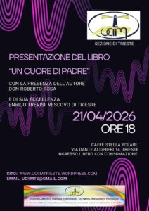 Martedì 21 marzo 2026, nell’anniversario della morte del Santo Padre Francesco, alle ore 18.00, presso il Caffè Stella Polare (via Dante Alighieri, 14), si terrà la presentazione del libro “Un cuore di Padre. Papa Francesco” di mons. Roberto Rosa. Oltre all’autore, interverrà il Vescovo mons. Enrico Trevisi. L’iniziativa è promossa dall’Uciim – Sezione di Trieste.