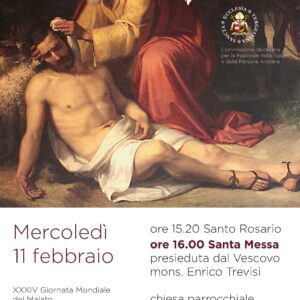 Mercoledì 11 febbraio 2026, alle ore 16.00, nella chiesa parrocchiale della Madonna del Mare, in piazzale Rosmini, il Vescovo mons. Enrico Trevisi presiede la Santa Messa in occasione della XXXIV Giornata Mondiale del Malato, che quest’anno ha per tema «La compassione del samaritano: amare portando il dolore dell’altro» dal titolo del Messaggio del Santo Padre Leone XIV.